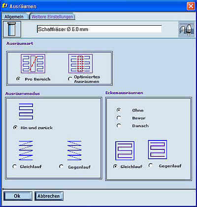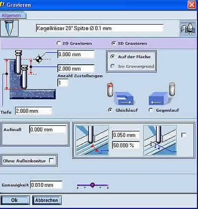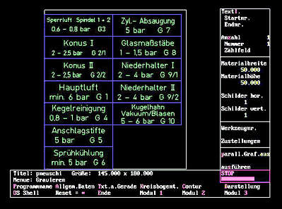 Type 3Das komplexere Programm G 16 bietet zahlreiche Einsatzmöglichkeiten mit einer Vielzahl angepasster Routinen für das gravurtechnische Schraffieren und Ausräumen, für Leerwegsoptimierungen und Anschnitttechnologie. Das Programm ist ein Spezialist, der auf vielen Maschinenrechnern direkt installiert, parallel arbeitend eine große Hilfe leistet.